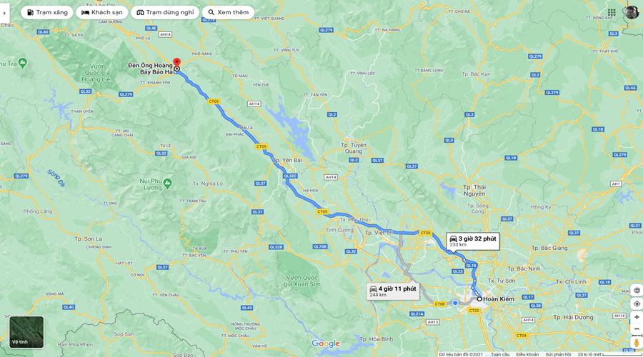 Ong Hoang Bay is worshiped in many places in our country, but the most famous and sacred is {Ong Hoang Bay Lao Cai temple}, located 68.3km from the center of Lao Cai province, Lao Cai city and the capital Hanoi. Within 233km, it takes 3 hours and 32 minutes to travel by road to the North according to estimates from Google Maps. The current road is quite convenient, so you can actively choose the means of transport to get to the sacred temple of Ong Hoang Bay:
